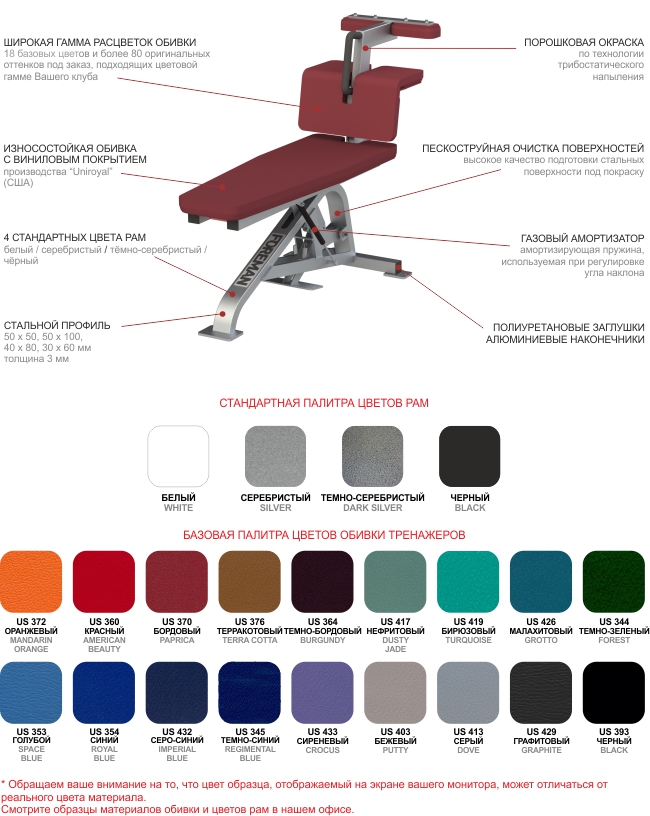 У нас вы найдёте полный модельный ряд тренажеров, сможете подобрать расцветки рам и обивки.