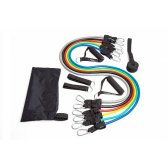 6 латексных амортизаторов с металлическими карабинами различного уровня сопротивления: желтый - экстра легкое сопротивление (10,0 кг); зеленый - легкое сопротивление (14,3 кг); красный - среднее сопротивление (18,8 кг); синий - сильное сопротивление (23,4 кг); черный - экстра сильное сопротивление (29,5 кг); серый - супер сильное сопротивление (35,3 кг);